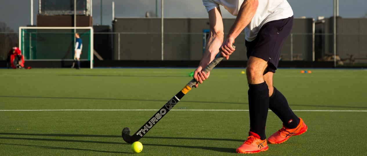 Then, arms and stick come down to hit the ball, located at the level of the left foot.